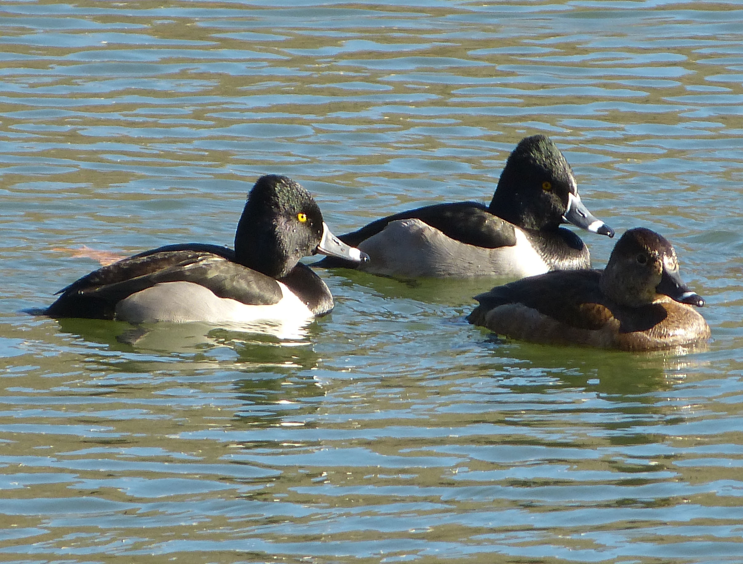 Ring-necked Ducks, two males and a female on the right. Photo: Bob Mayer